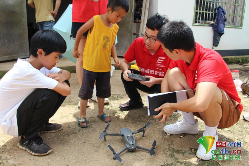 图为实践团在向孩子们展示无人机。中国青年网通讯员 王向龙 提供